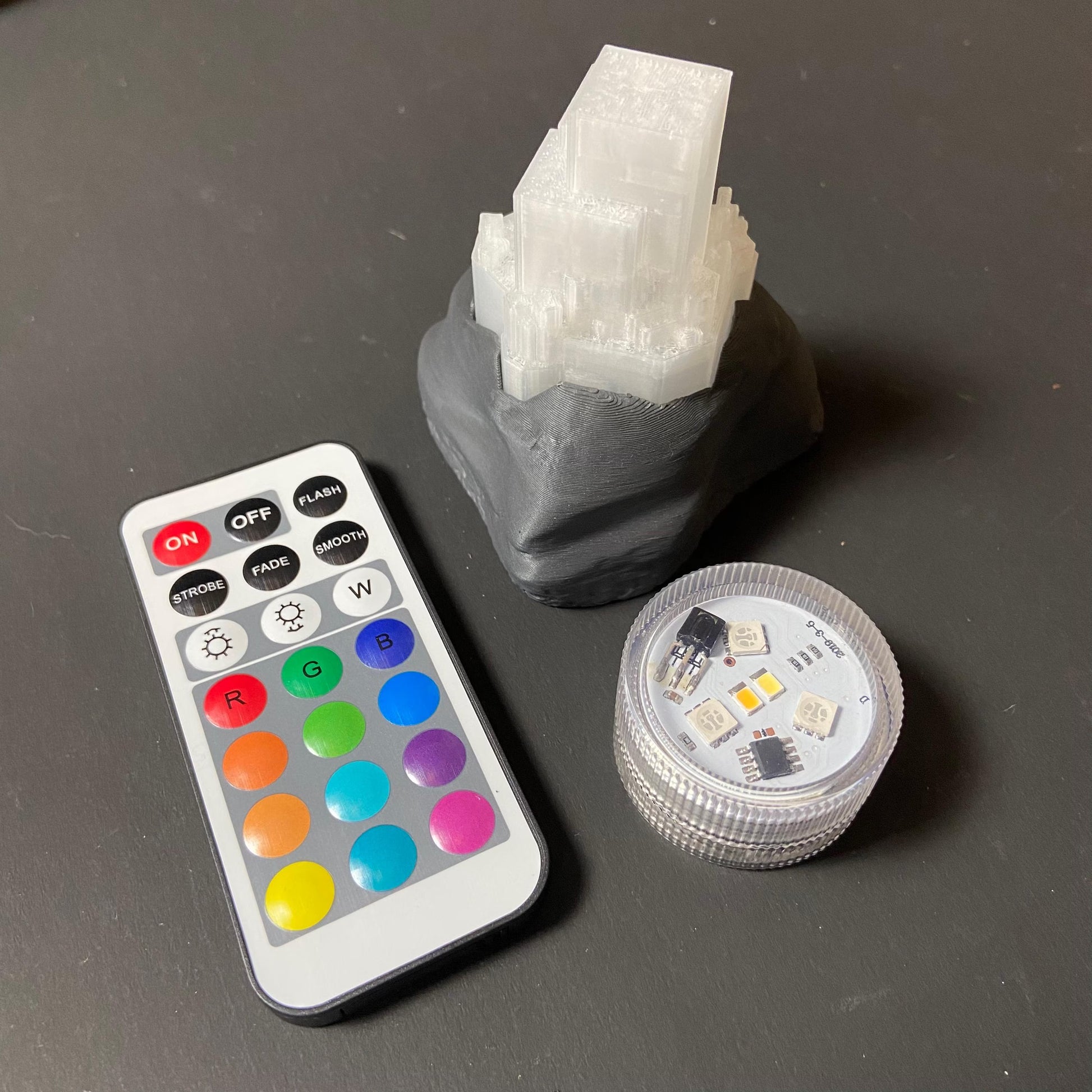 3D printed in gray and clear PLA